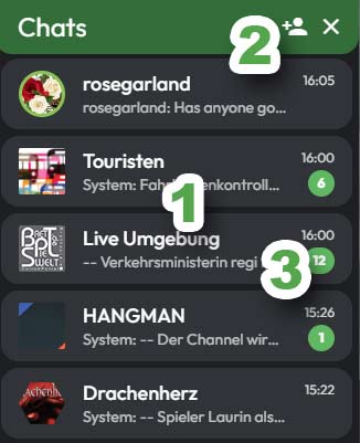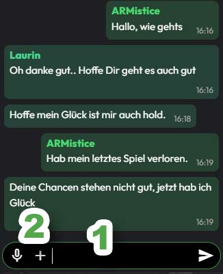 Clicking on the desired chat takes you to the respective chat area, either with a player, a game or a group chat. Here you can read the corresponding chat messages.